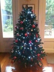 So here is our very eclectic Christmas tree. Yes years ago I had the “designer” Christmas tree, with every last bow (or whatever was in fashion at the time) placed just so, completely colour co-ordinated, not a branch out of place. As the men-children came along, so too did the home-made decorations, which were proudly added to the tree or used as centrepieces for the table (it’s amazing how good a couple of wreaths made from dried pasta and spray painted gold looked).